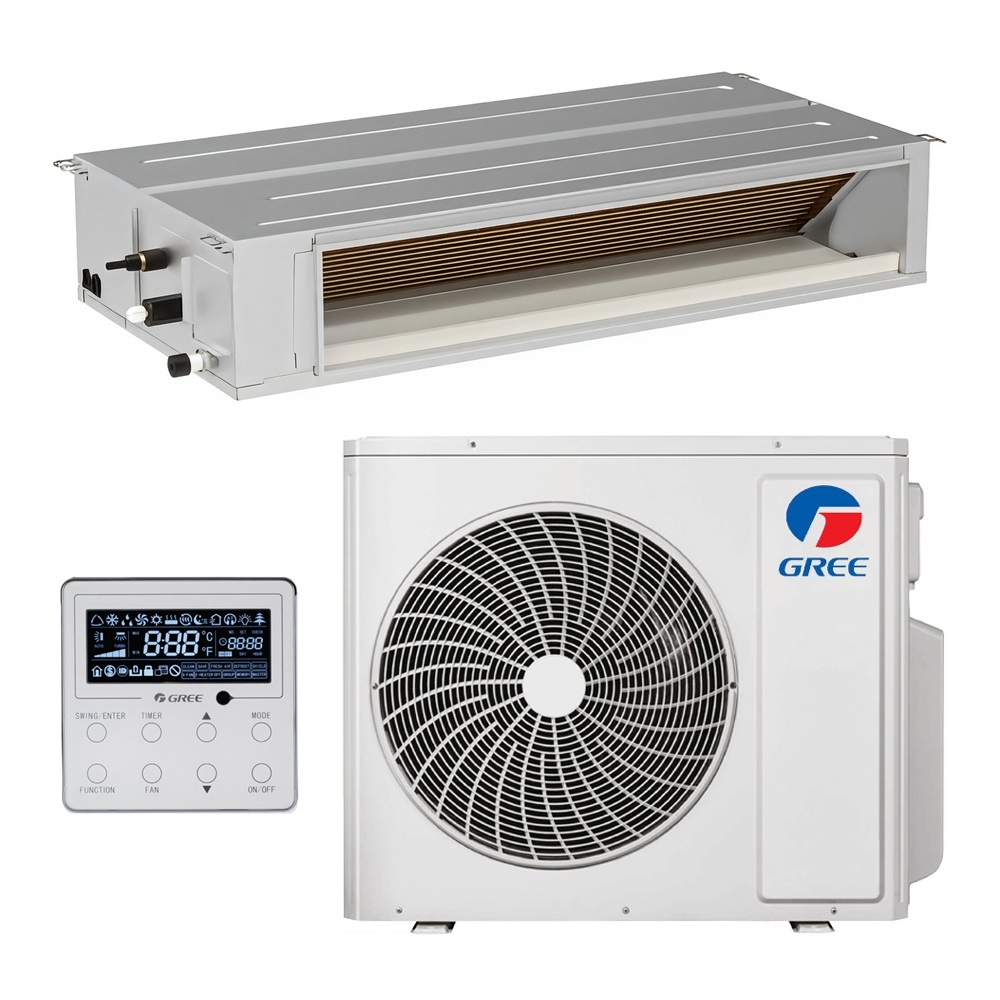 Канальный кондиционер Gree GUD71PHS1/A-S поставляется с проводным пультом и дренажной помпой. Последняя позволяет наладить удобную систему трубопровода при различных конфигурациях помещения. Инверторная технология способствует общему снижению расхода энергии и повышению скорости набора нужной температуры.